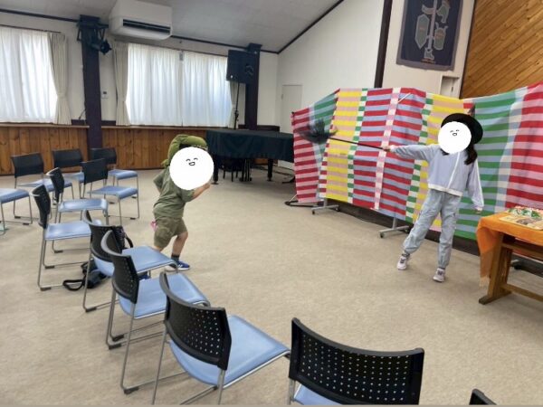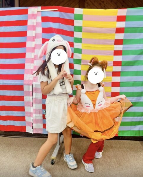 そのあとは、「シルエットクイズ」や「だるまさんがころんだ」をして遊び、お菓子を食べました。とても楽しい行事をなりました!!