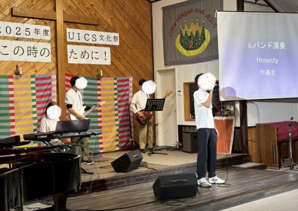文化祭では、、生徒たちの作品展や保護者の方によるバザー、エステル記の劇、バンド演奏や合奏などが行われました。