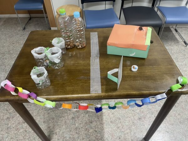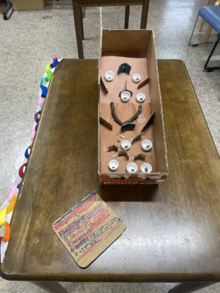 例年おもちゃランドはプリスクールの幼児さんを招待していましたが、3月に閉園してしまったので、今年度は3年生~高校生までを招待し、昼休み開催しました。大きなお兄ちゃん、お姉ちゃんたちも、はじめて見るおもちゃランドに興味を示してくれて、みんなで手作りおもちゃを楽しむことができました。
